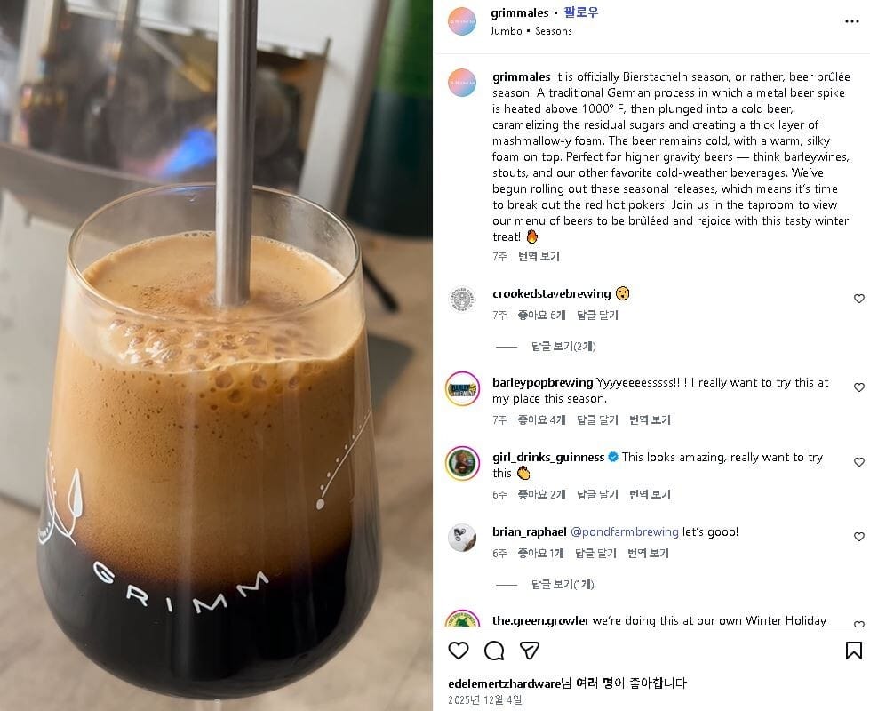 🧑💬 Grimm’s Beer Brûlée Reels have surpassed 2.8 million views, prompting breweries across the U.S. to roll out seasonal “brûlée-ready” beer menus. I initially thought Grimm was just a trendy experimental brewery — turns out they won NY State Brewery of the Year in 2021, 2022, 2024, and 2025.